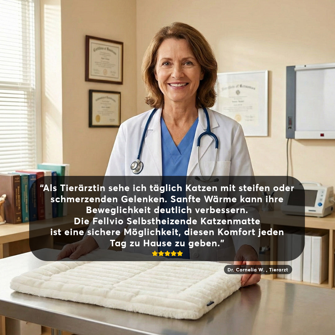 Tierärzte wissen: Kalte Böden sind Gift für Katzen-Gelenke. Kälte verengt die Blutgefäße und verursacht Schmerzen. Die Fellvio™ Matte ist nicht nur ein Bett – sie ist ein bio-thermisches Wärmesystem.